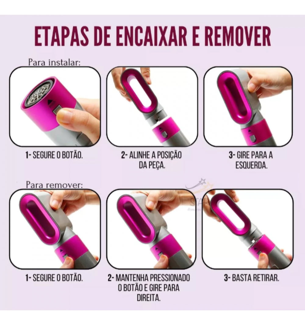 Escova Modeladora E Alisadora De Ar Quente 5 Em 1 Profission